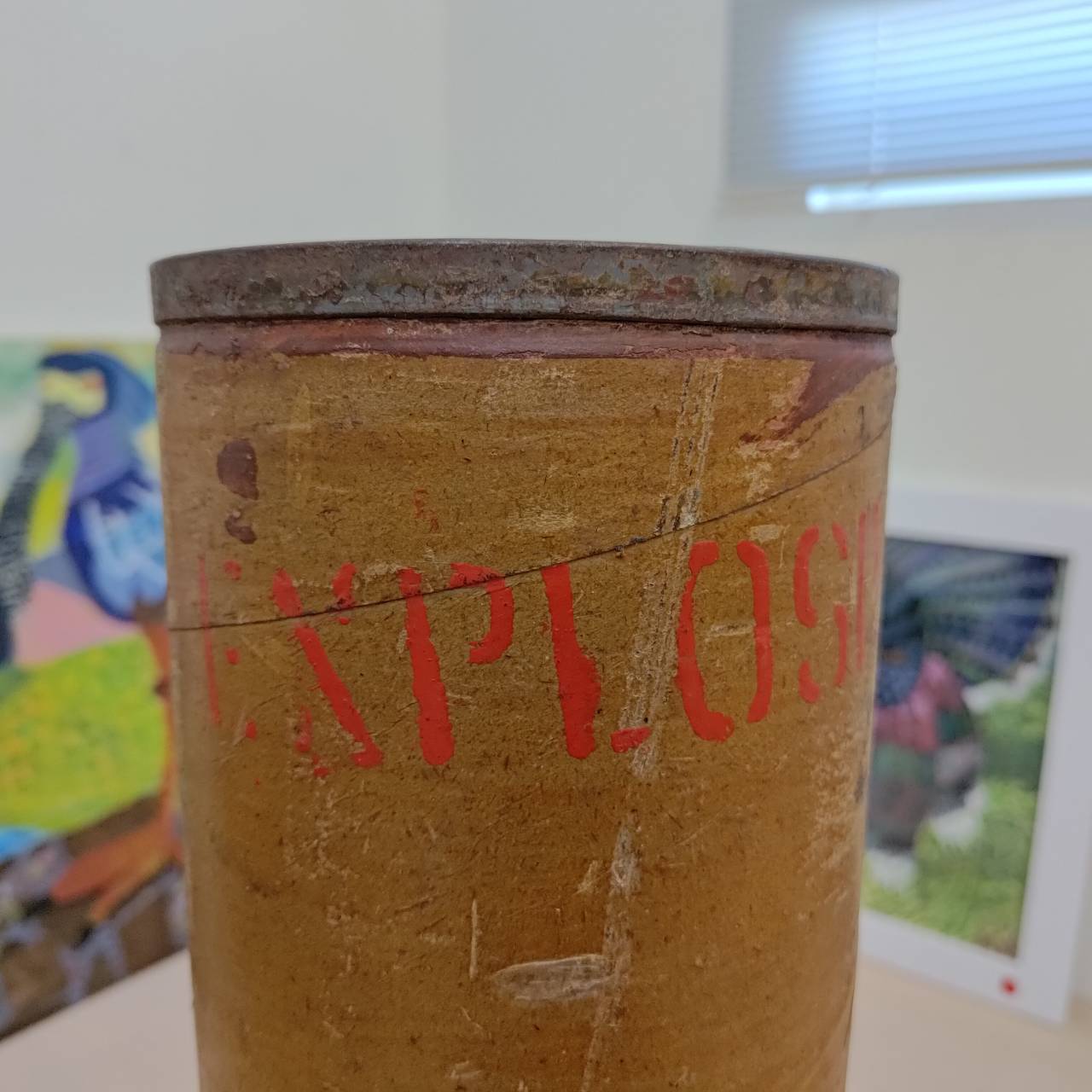 Dating to the early 2000s, this Howitzer shell casing was likely used in the Second Gulf War of 2003, or in drills leading up to the war. Ideal for decorating an empty corner or om the end of a shelf. ‘EXPLOSIVE’ stamped around the top.