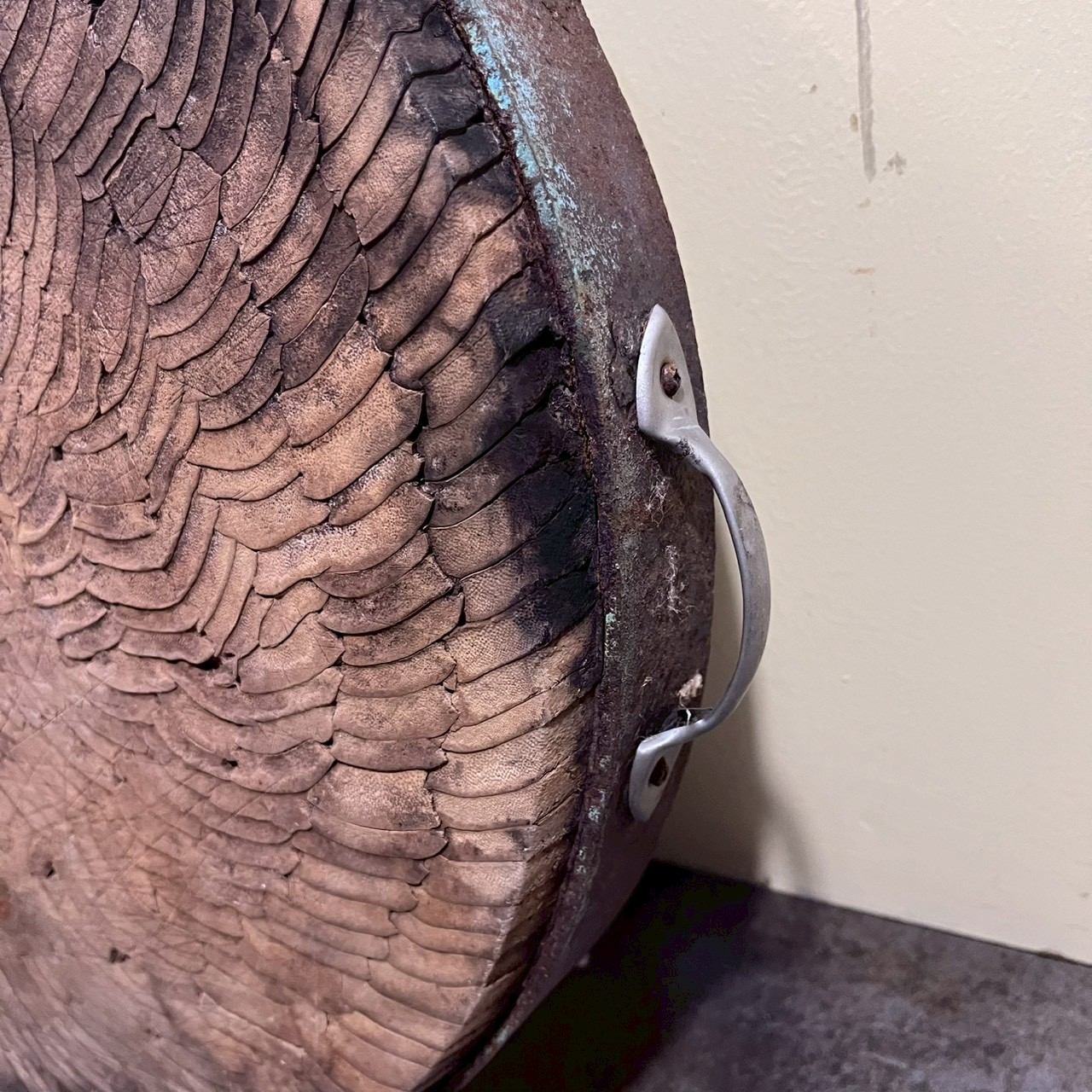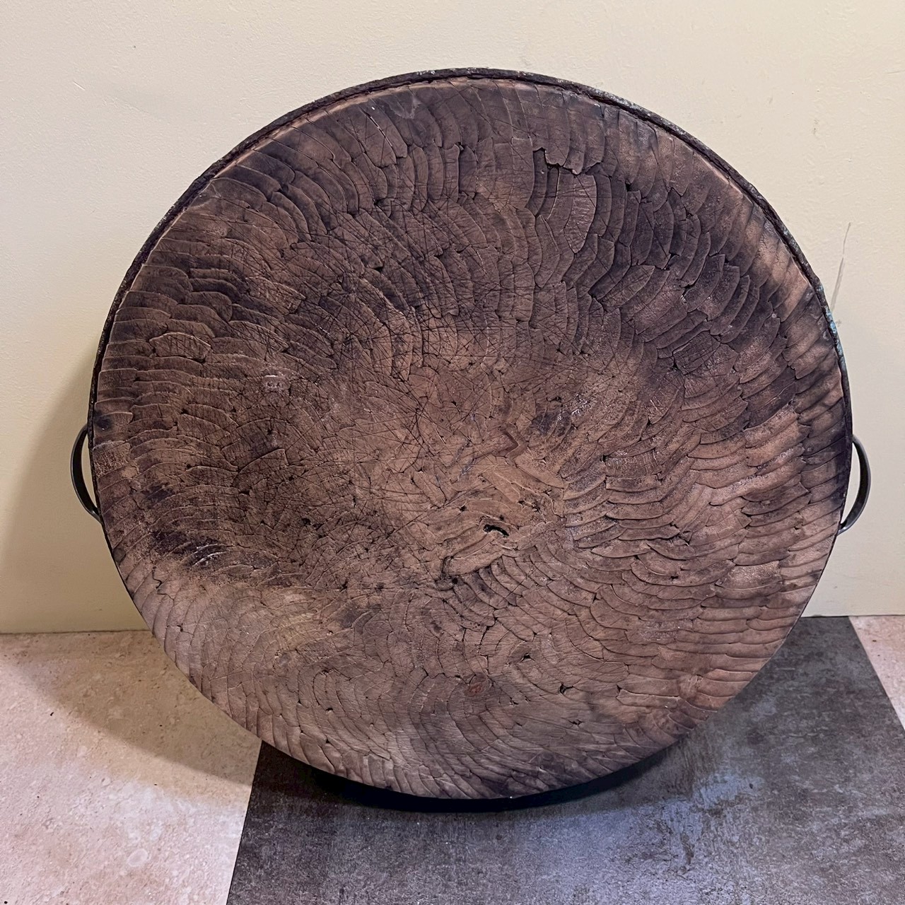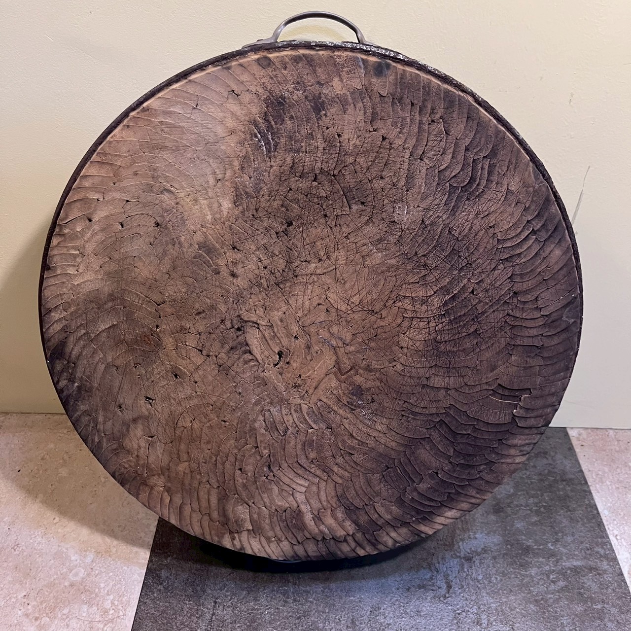 推測為20世紀晚期市場或肉舖使用的砧板,蒐羅自宜蘭。其置於桌面亦極具話題性。