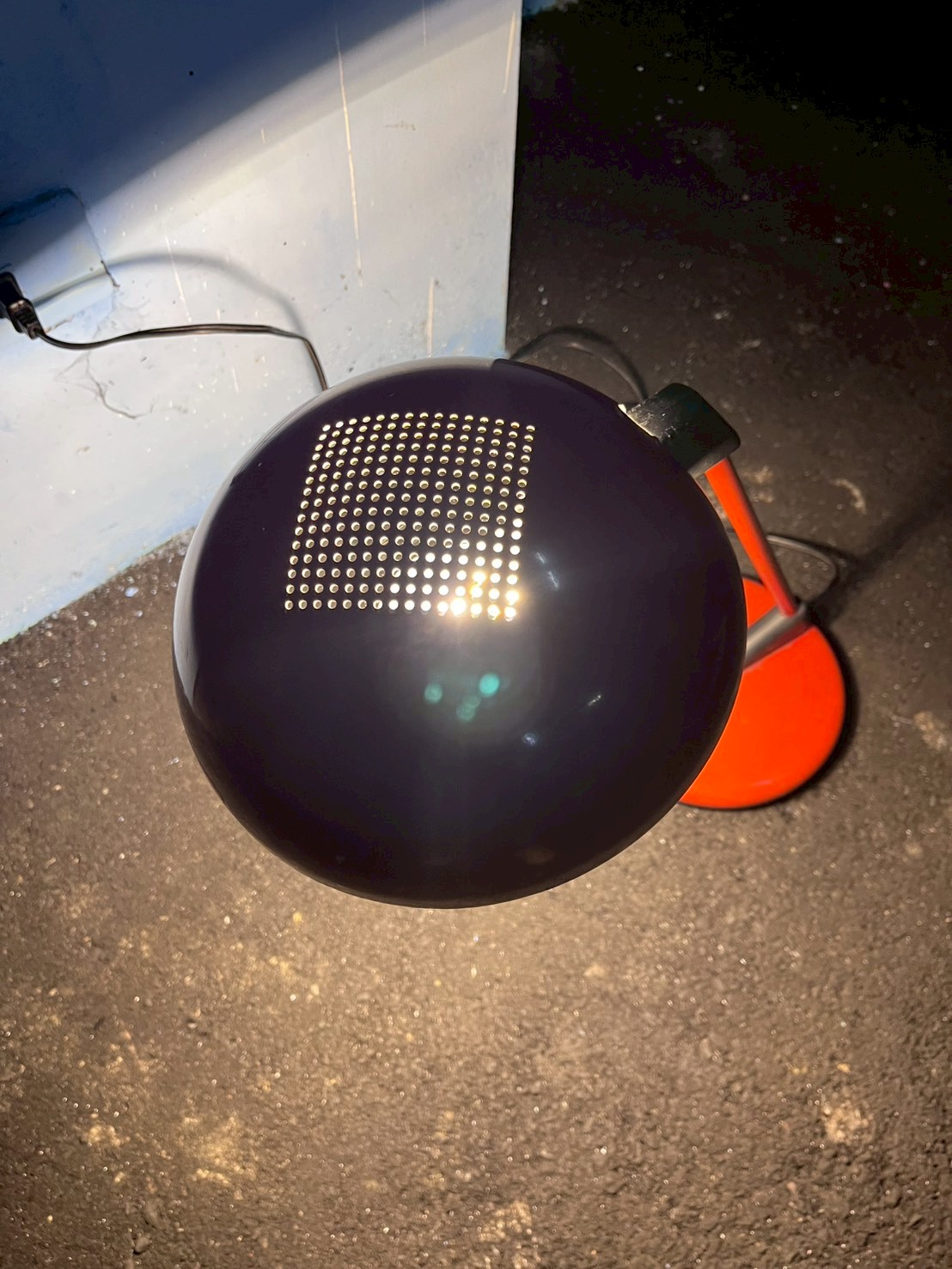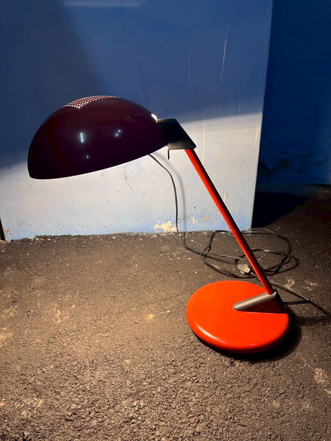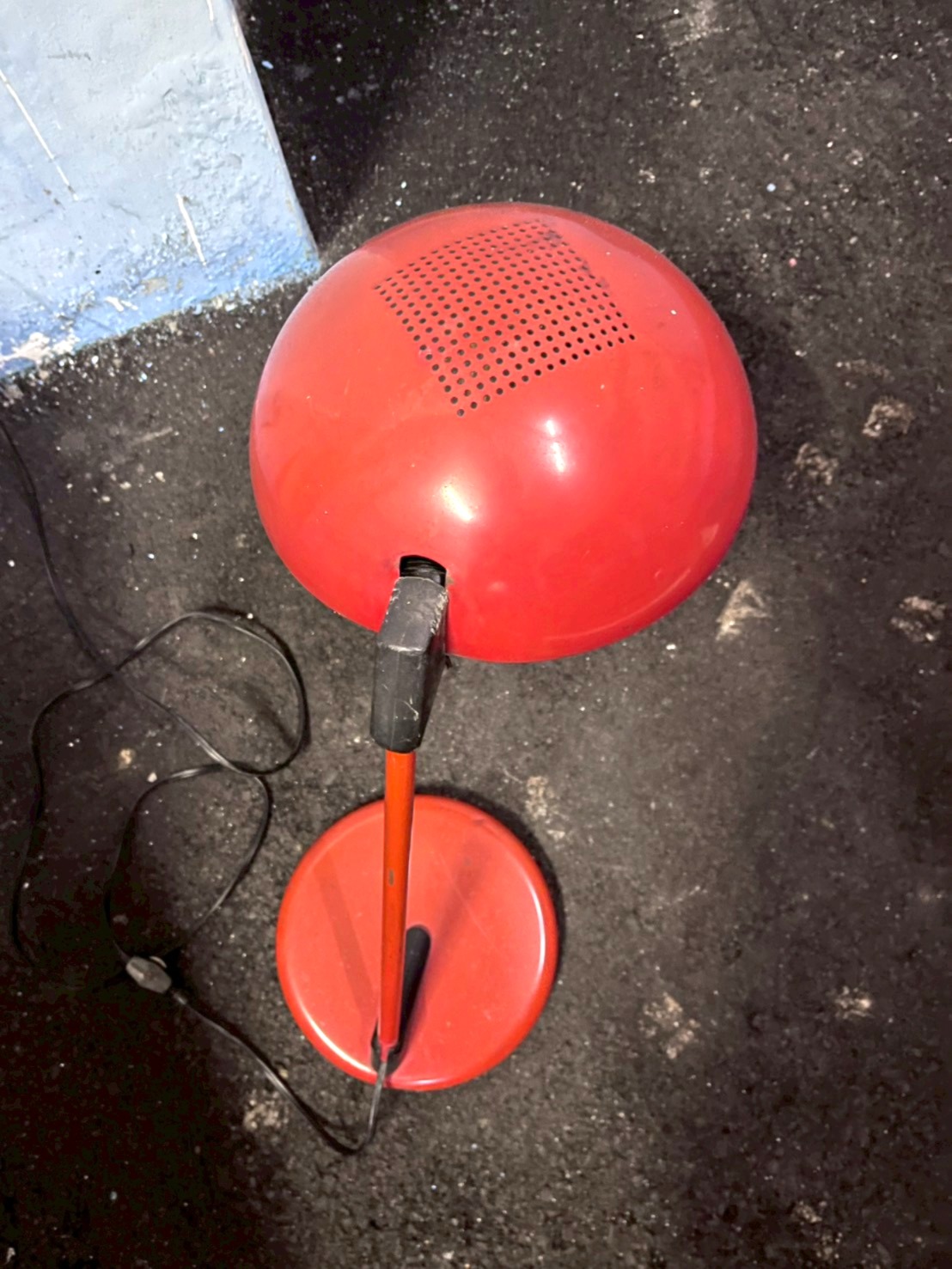 1960年代亮紅色西德桌燈,曾是保險公司辦公桌燈。此燈於台灣東部花蓮被發現。已重新配線,功能正常。